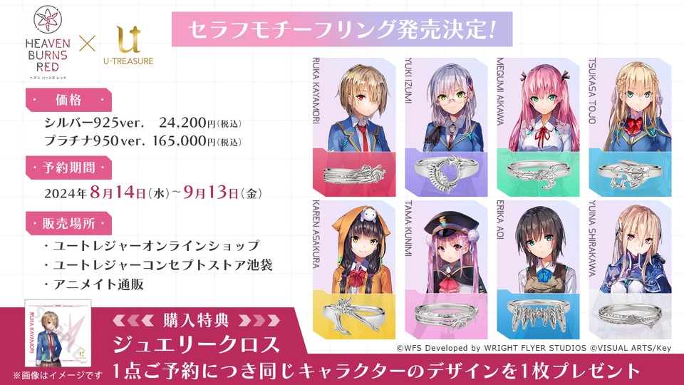 ジュエリーブランド「ユートレジャー」とヘブンバーンズレッドとのコラボリングが発売決定しました!