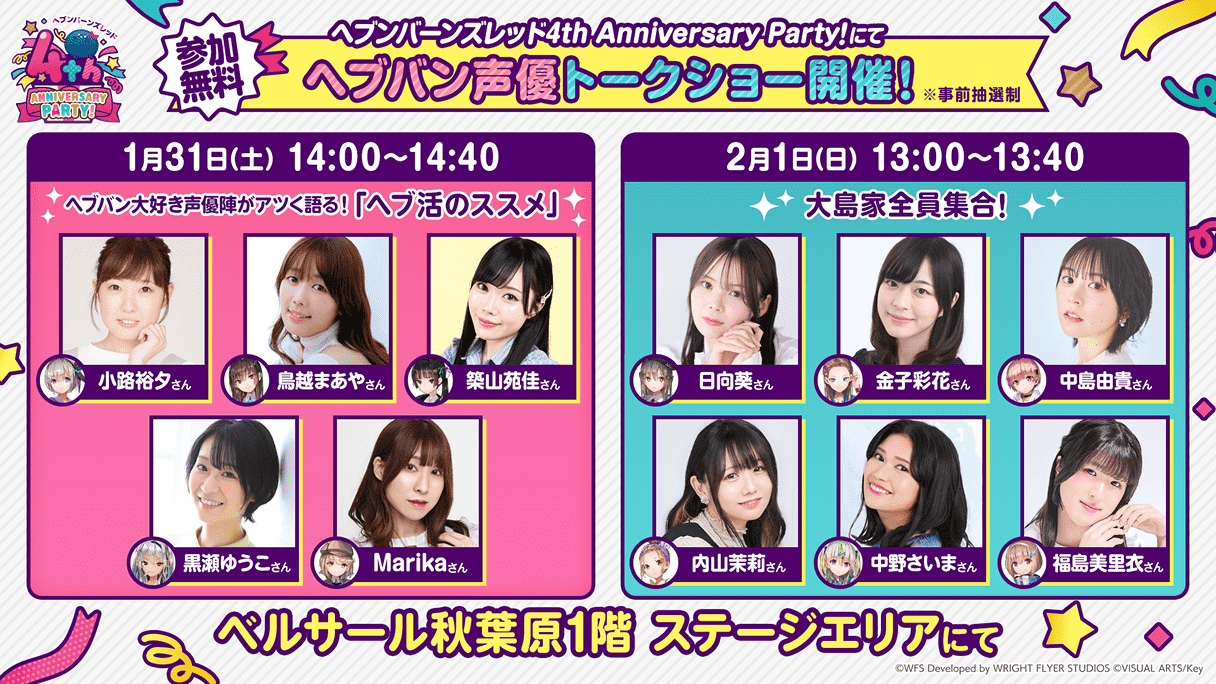・会場スタッフアートヒストリーを除くヘブンバーンズレッド4周年記念オフィシャルグッズについては、後日、ライトフライヤーストアにて予約受付を開始いたします。